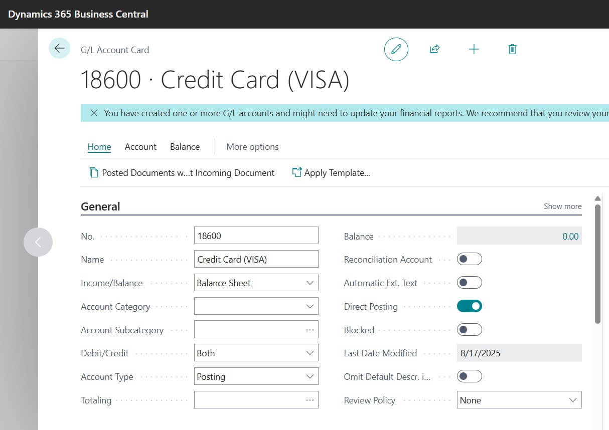 Pro Tip: Business Central usually comes with a standard COA template, but you can edit or create your own based on your company’s needs.