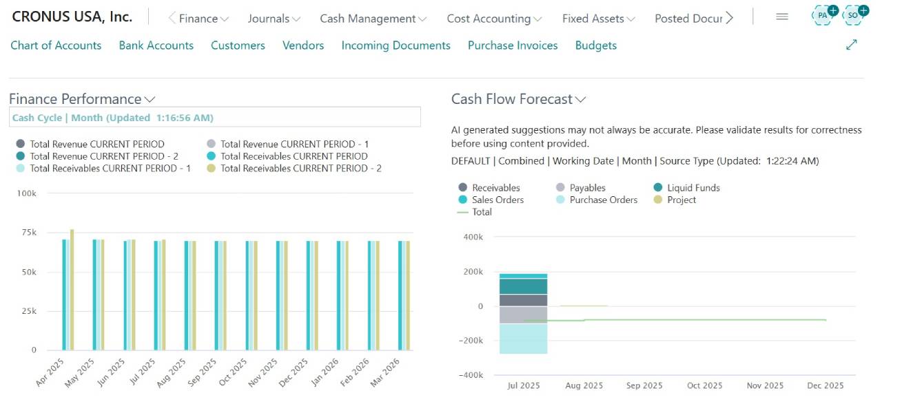 Cash Flow Forecast in Role center Dashboard