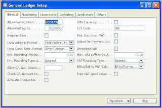 In this tab you can fill all the General features of the General Ledger Setup. In this most import one is that Posting Date Allowed option, where you can fill out from which date to which date the posting date should allow. To setup posting date you have to fill out the fields,