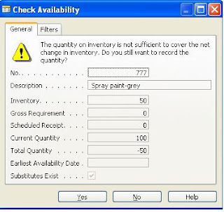 If the quantity that you entered in the Sales Order Line exceeded the available inventory, Navision will prompt up an message as follow: