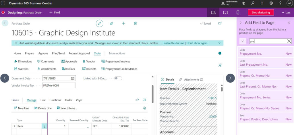 A vendor prepayment is the advance money you pay to a supplier before receiving goods or services. Business Central helps you record, track, and adjust this easily.